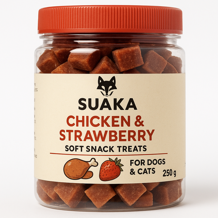 **سوآکا مرغ و توتفرنگی** یک اسنک سالم و مدرن برای حیوانات خانگی است که با ترکیب ویژه مرغ تازه و توتفرنگی طبیعی تولید میشود. این محصول تحت برند سوآکا و توسط فرمولاسیون کارشناسیشده، سعی دارد تنوع و تازگی را به سبد غذایی حیوانات خانگی بهویژه سگها و گربهها بیاورد.