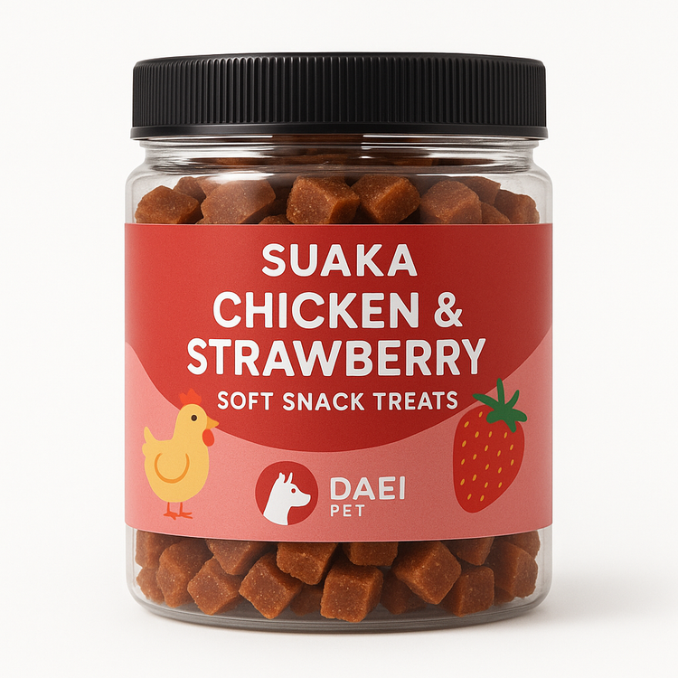 - **عطر و طعم طبیعی:** بو و طعم ملایم توتفرنگی در کنار مرغ، تجربهای متفاوت برای حیوان ایجاد میکند و احتمال خورده نشدن اسنک را به حداقل میرساند.