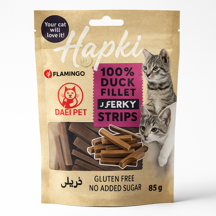 تشویقی فلامینگو فیله اردک و ماهی مخصوص گربه (Flamingo Hapki 100% Duck + Fish Strips)