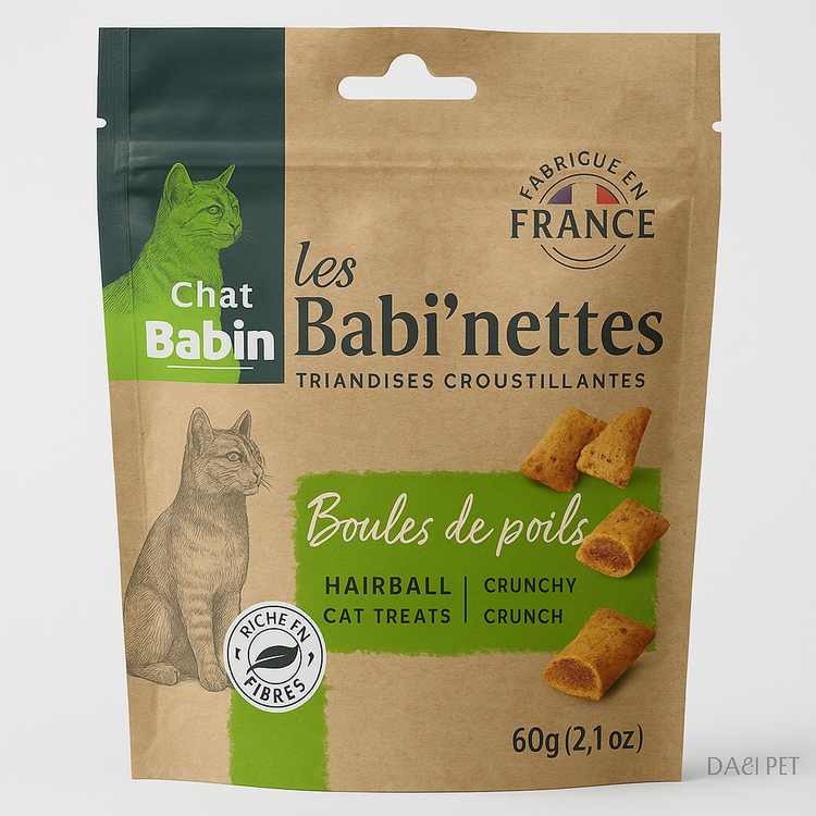 Babin Babinettes Cat Treats are specially crafted in France with an enjoyable soft texture. Perfect for reducing hairballs, these treats weigh 60g and are enriched with natural flavors for your cat’s health and joy.