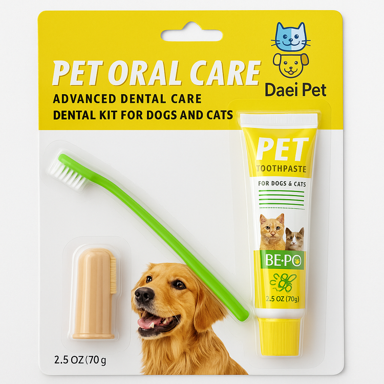 ست کامل بهداشت دهان و دندان دایی پت، شامل یک عدد مسواک، خمیر دندان و انگشتی مخصوص برای سگ و گربه است. این محصول به طور ویژه جهت جلوگیری از پوسیدگی، جرم و بوی بد دهان حیوانات طراحی شده است.